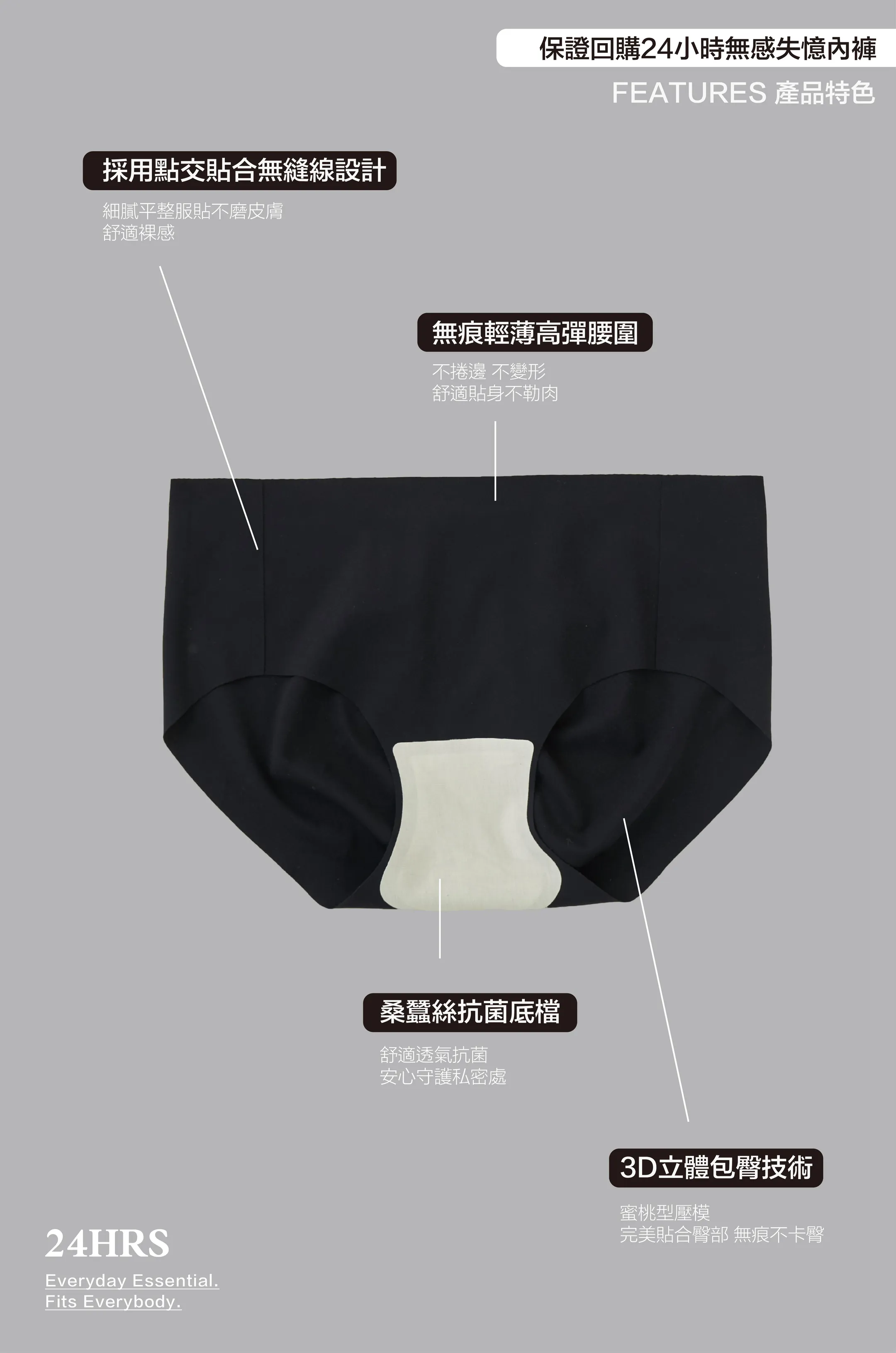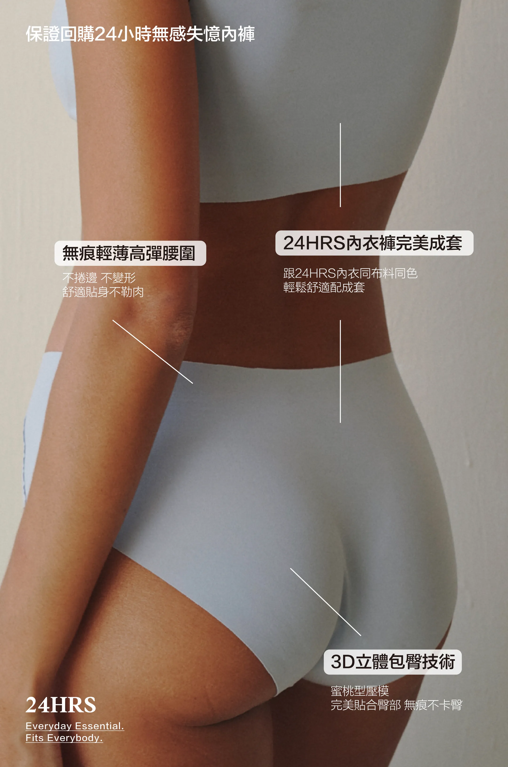 因此 24HRS內褲 在後臀部採用 #3D立體防夾臀設計